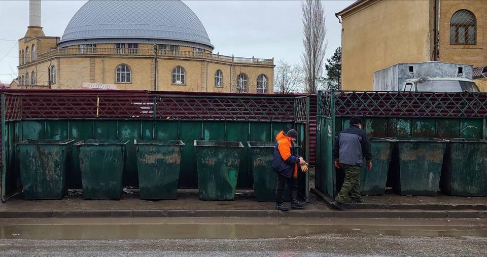 МБУ «Благоустройство» проводит ремонтные работы на контейнерной площадке по ул. Генерала Омарова