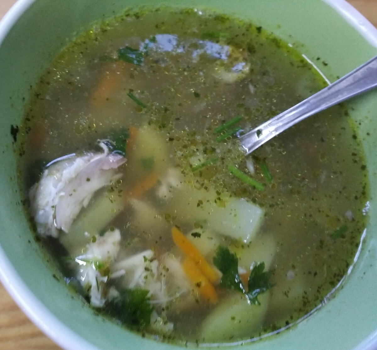 Пока нарезки готовятся, рыба, отцеженная на дуршлаге, успевает немного остыть. Картошку, морковь и лук нужно добавить в бульон, а рыбу перебрать от костей. Мясо и кости — это две разные истории. Затем рыбу возвращаем в бульон, солим по вкусу и варим до готовности картофеля.