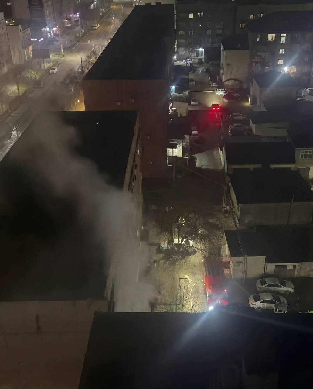 В Сети уже появились кадры последствий . На видео — многоэтажка, из которой валит дым, и пожарная машина у подъезда .