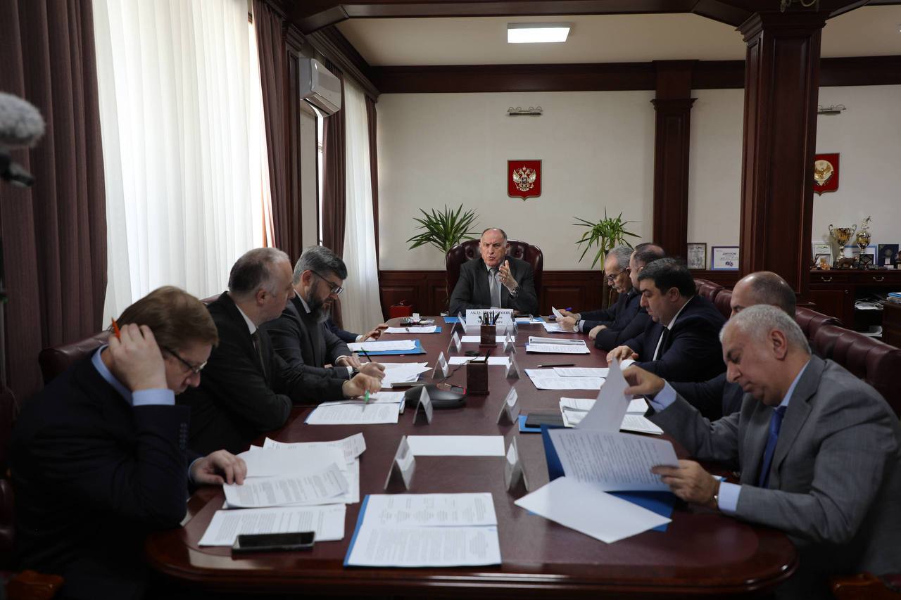Председатель Правительства РД Абдулмуслим Абдулмуслимов провел сегодня на базе Минимущества Дагестана межведомственное совещание по вопросам вовлечения в хозяйственный оборот виноградопригодных земель и развития горно-долинного садоводства.