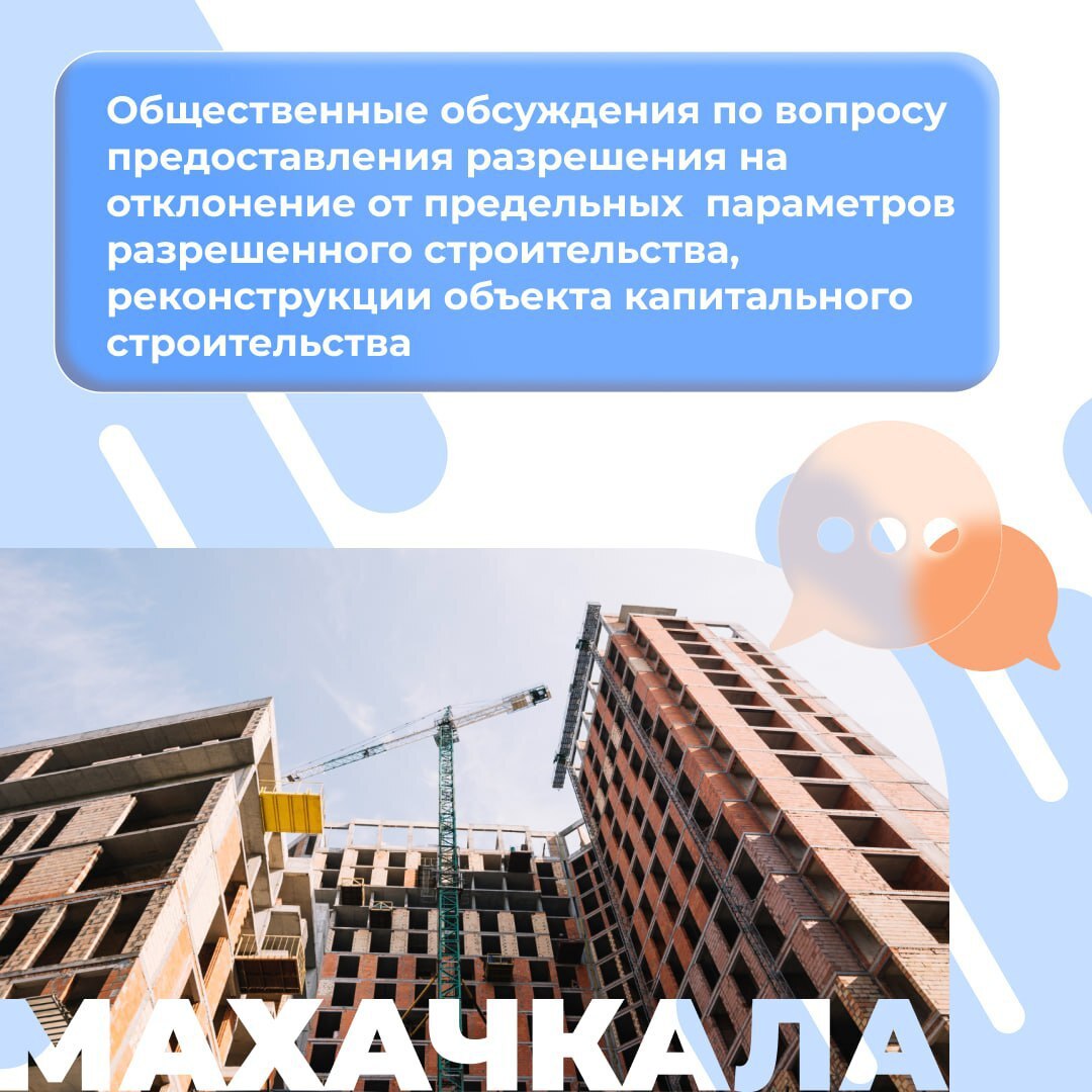 Внимание, Махачкала! Назначены общественные обсуждения по вопросу предоставления разрешения на отклонение от предельных параметров разрешенного строительства и реконструкции объекта капитального строительства.