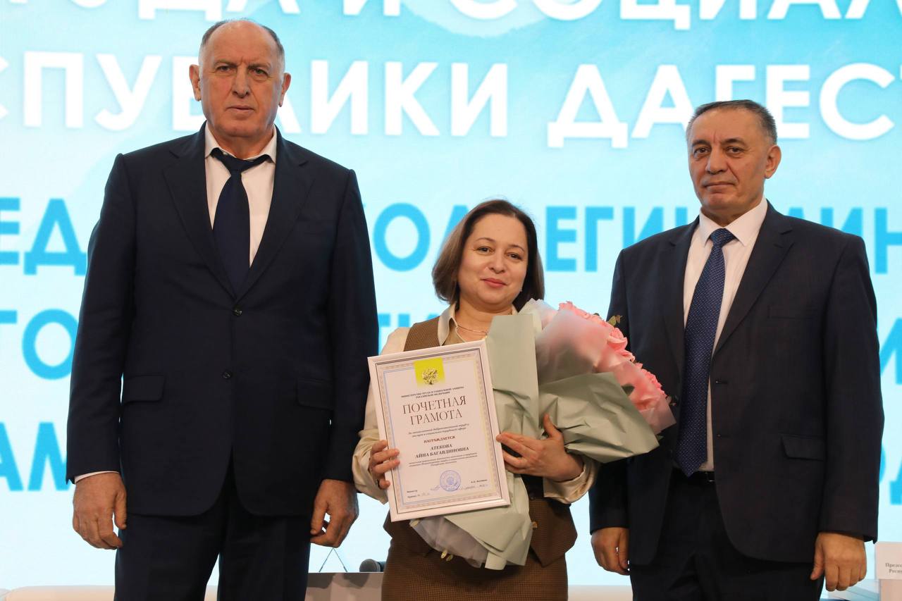 Отличившимся работникам также были вручены Почетные грамоты и Благодарности Минтруда России. Часть работников ведомства награждена Почетными грамотами и благодарностями Правительства Дагестана и Главы РД.