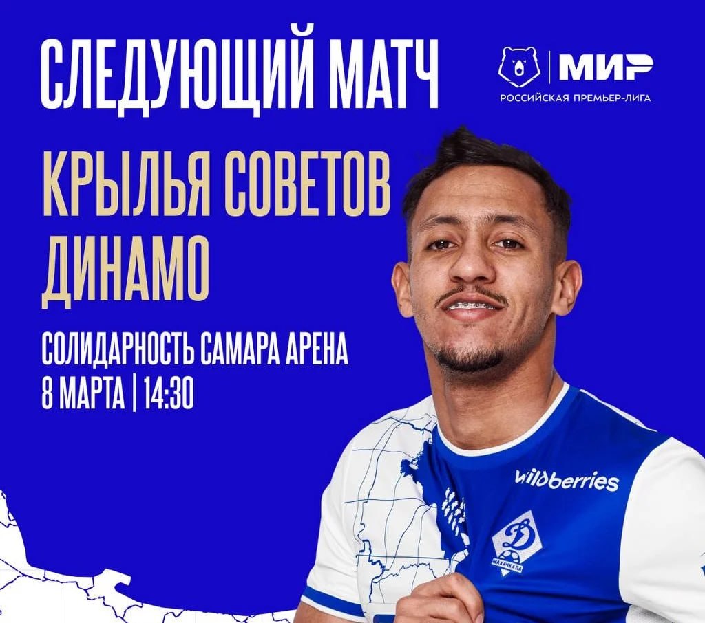Матч 20-го тура РПЛ махачкалинское «Динамо» проведет в гостях в Самаре. Игра против «Крыльев Советов» состоится 8 марта. Стартовый свисток прозвучит в 14:30 часов.