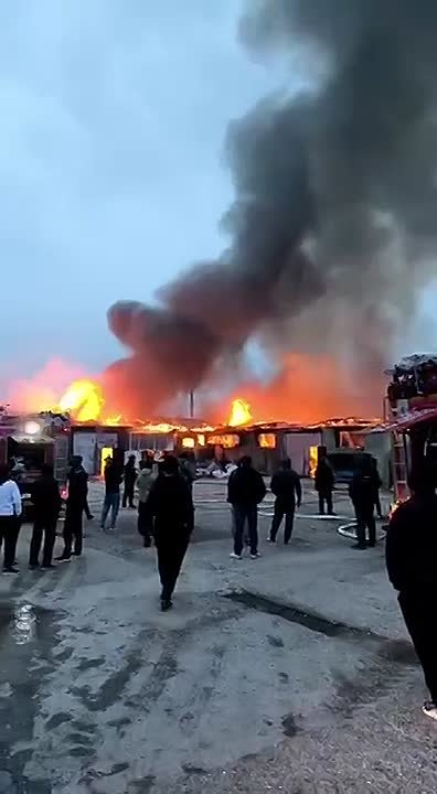 Еще один пожар в Махачкале, горит мебельный цех на улице А. Султана