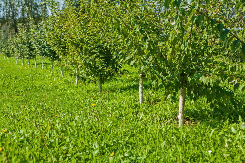 С приходом температур выше нуля следует убрать укрытие с яблонь, что важно делать в зависимости от региона — с начала апреля до середины мая. Не стоит торопиться, ведь кора молодых деревьев может получить ожоги от интенсивного солнечного света. Кроме того, вместе с укрытием стоит убрать и слой мульчи из приствольных кругов.