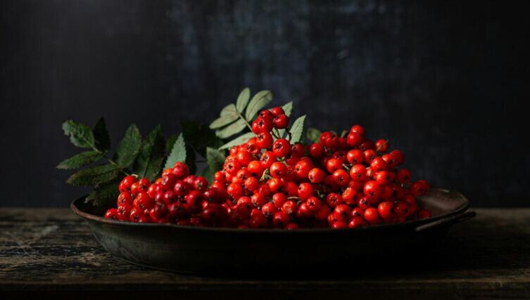 - Дерево и трава: рябина и калина, которые становятся терпкими после первых заморозков, также украшают осенние блюда.