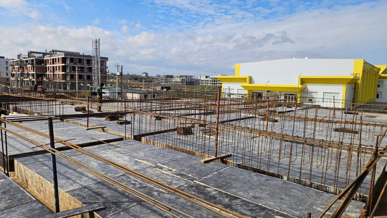 В настоящее время ведутся работы по армированию ригелей и плит перекрытия первого этажа (левый блок).