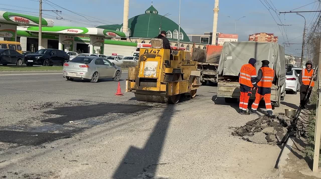 Работы по укладке асфальтового покрытия ведутся и на проспекте Акушинского.
