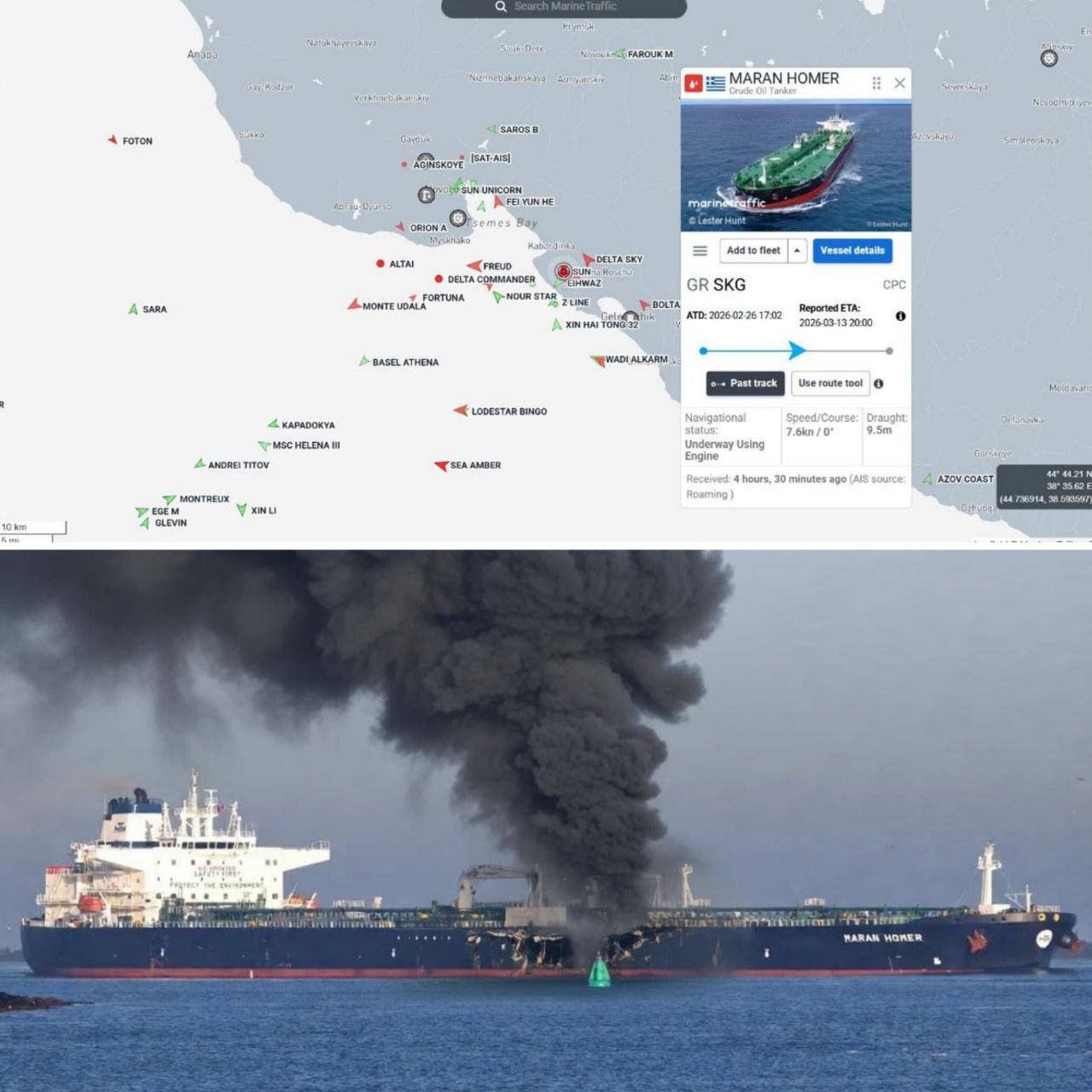 Украинский безэкипажный катер - камикадзе сегодня атаковал греческий нефтяной танкер Maran Homer в Чёрном море.