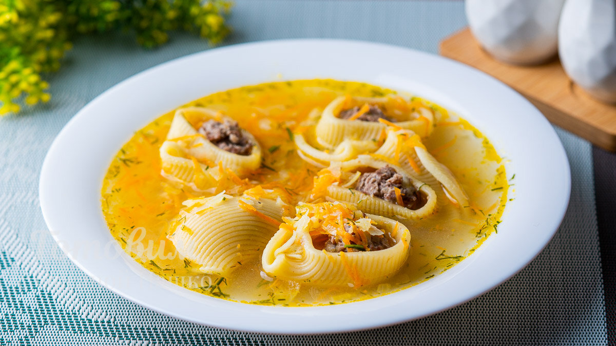 Суп с фрикадельками и пастой лумакони — это кулинарный шедевр, который идеально подойдёт для обеда. Лумакони, особая итальянская паста в форме улиток, отлично подходит для фарширования и запекания, а в нашем случае — для супа с мясом. Фарш наполнит большие ракушки вкусом и сделает блюдо поистине уникальным, пишет канал.
