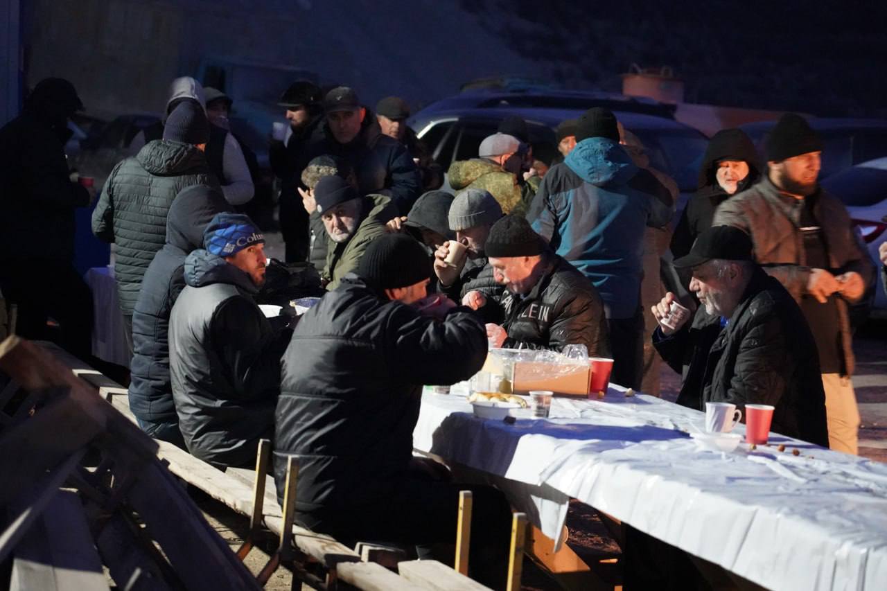 Также, в рамках инспекции, для всех желающих был организован торжественный ифтар, в рамках которого были представлены разнообразные блюда, включая плов, приготовленный на открытом огне в казане, мясные угощения, сладости и напитки.