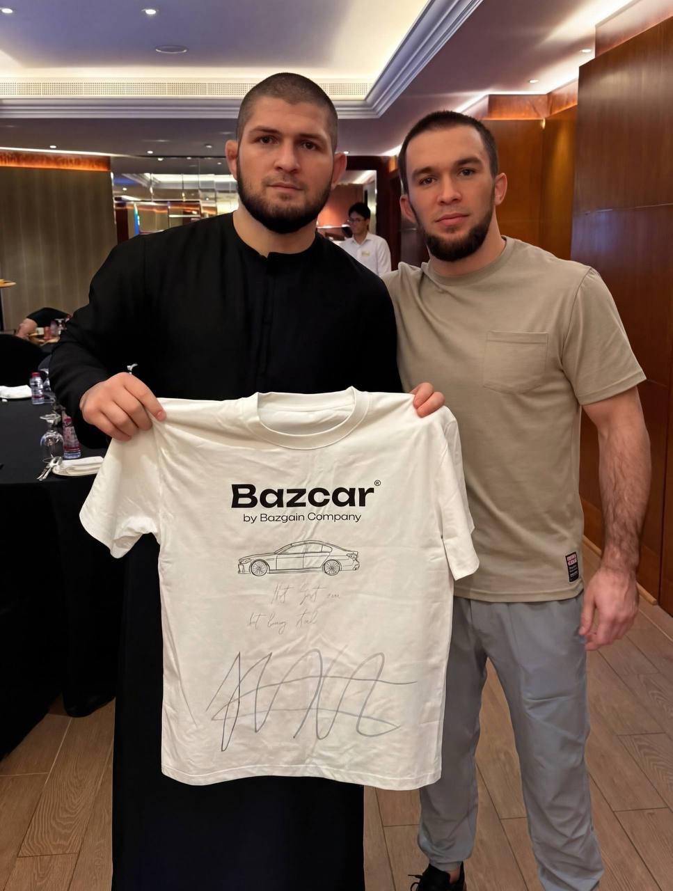 Футболку с автографами известных дагестанских бойцов продали на благотворительном аукционе за 500 тысяч рублей.