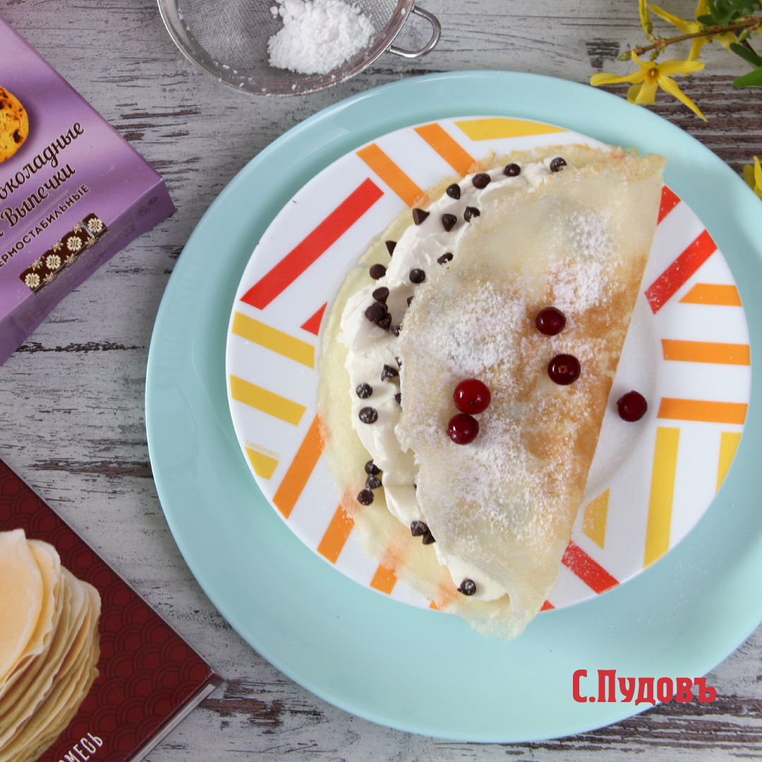 Сегодняшний рецепт предлагает приготовить рисовые блины с нежным кремом из сливочного сыра и шоколадными каплями. Эти лёгкие и воздушные блины станут настоящим хитом на вашем праздничном столе. Нежный крем не оставит равнодушным никого, а их простота в приготовлении с использованием смеси «Золотое утро» делает их доступными для каждого.
