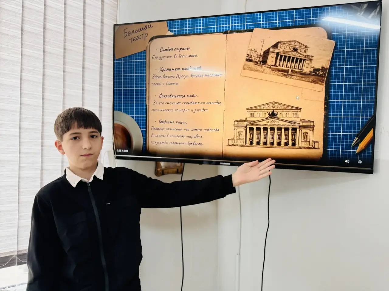 В рамках занятия ребята посмотрели фрагменты архивных записей и современных постановок Большого театра, а также изучили памятку «Готовимся к посещению театра».
