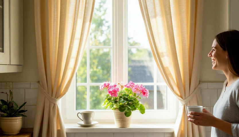 Кроме того, чистота занавесок, как ни странно, влияет на общее состояние духа. Теперь, варяя кофе, можно наслаждаться солнечными зайчиками на стенах, и день начинает с улыбки. Так что стоматолог даже пошутил, что в квартире поменялись лампочки. На самом деле, дело в чистоте окон, дарящих свет!