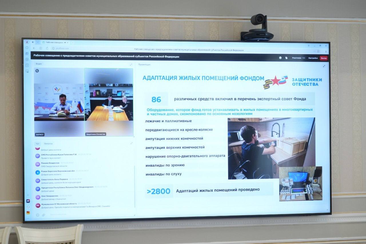 Исполнительный директор фонда «Защитники Отечества» Юрий Хабров подробно рассказал о проводимой работе комиссии, а также о создании доступных условий для ветеранов специальной военной операции. В ходе выступления были приведены примеры проблемных ситуаций, связанных с отсутствием доступной среды. При этом было отмечено, что за время работы фонда удалось адаптировать 2800 помещений. В рамках совещания даны рекомендации муниципалитетам для адаптации жилых помещений для людей с ограниченными возможностями.