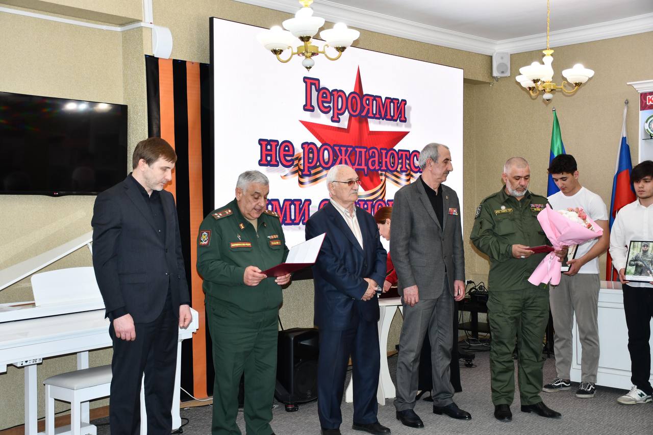 Председатель ДРОО "Память гор" по Каспийску, участник боевых действий и майор запаса Росгвардии, награжденный государственными наградами Тамирлан Феталиев, заместитель председателя ДРОО "Память гор" по Каспийску, участник специальной военной операции, награжденный государственными наградами Алимет Небиев, оператор Муниципального Штаба #МЫВМЕСТЕ Мадина Темирова, социальные координаторы фонда "Защитники Отечества", и другие.