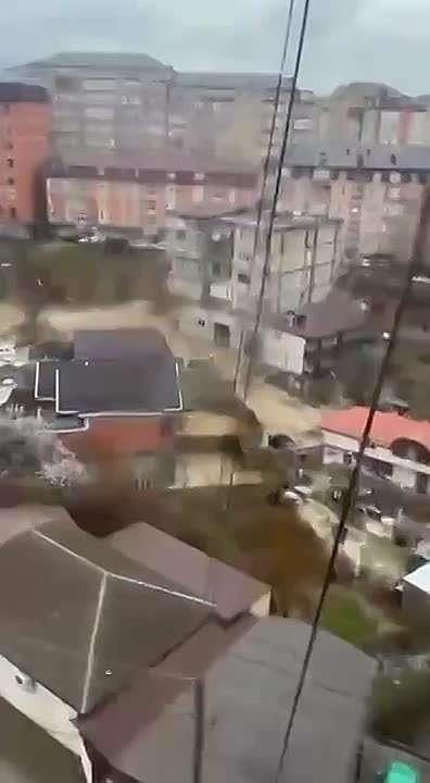Из-за ливней столица Дагестана превратилась в Венецию: проезжие части улиц оказались затоплены, потоки сносят автомобили.