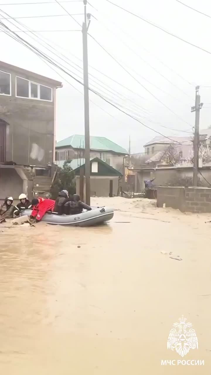 Уровень воды местами достигает 1,5 метров, спасатели эвакуируют местных жителей.