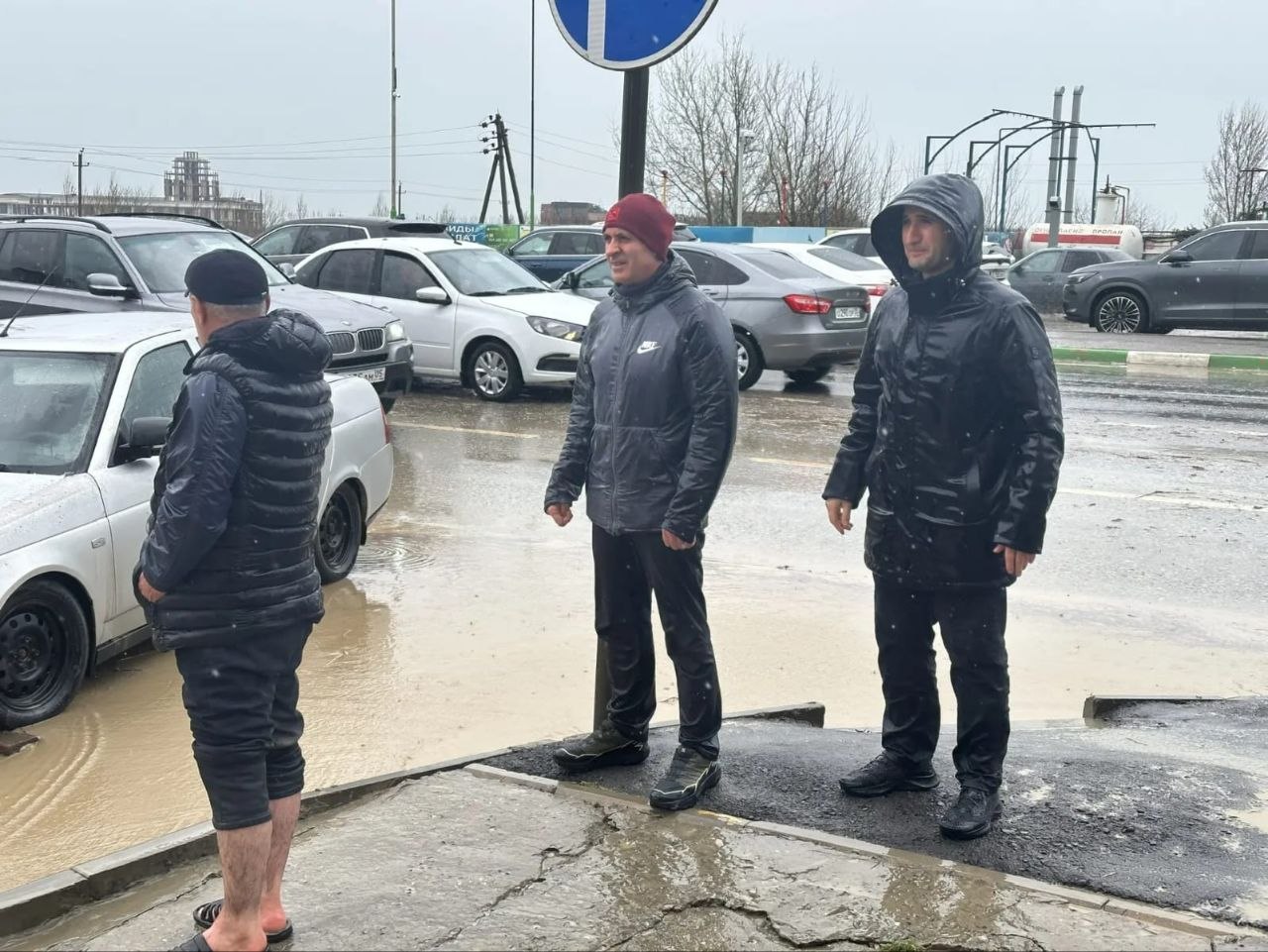 На кадрах видно, что люди ходят босиком, так как попытки укрыться от потопов — бесполезны. "Вот эта река, Черкес-озень, вышла из своих берегов. Посмотрите, здесь дорога сливается с водой, частный сектор Махачкалы уходит под...
