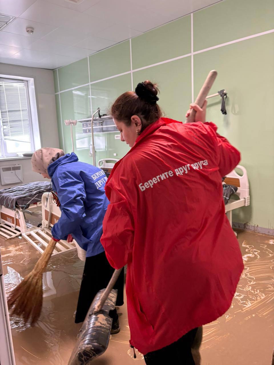 Ребята активно включились в работу: очищают помещения от воды и грязи, выносят повреждённое имущество, приводят в порядок кабинеты и коридоры. Каждый из них понимает, насколько важно как можно быстрее восстановить работу учреждения, ведь от этого зависит оказание медицинской помощи жителям.