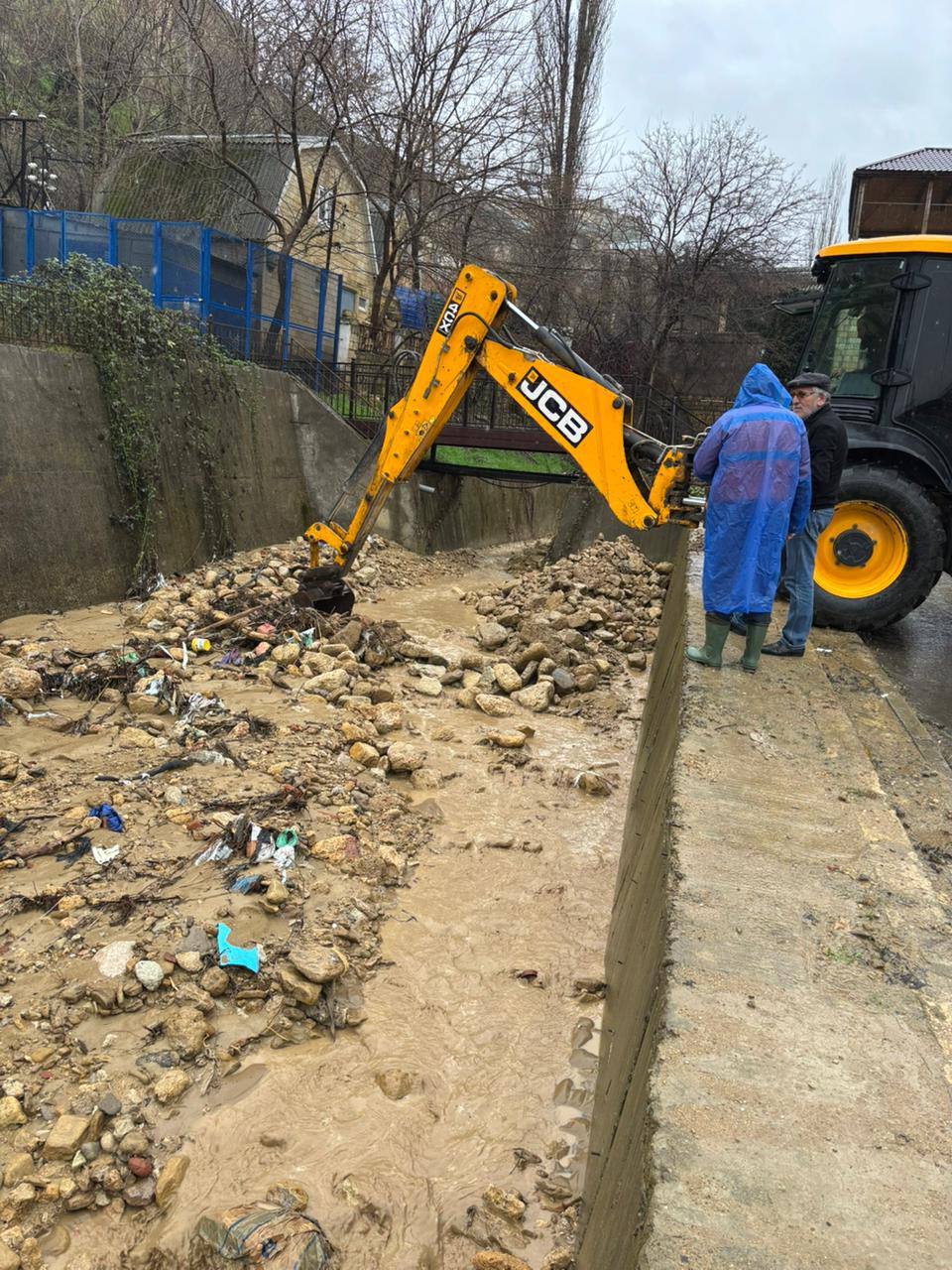 На селезащитных сооружениях по улице Мамедбекова продолжается расчистка отсеков от камней и грязевых масс. Работы проводят сотрудники Управления городского хозяйства с привлечением экскаватора.