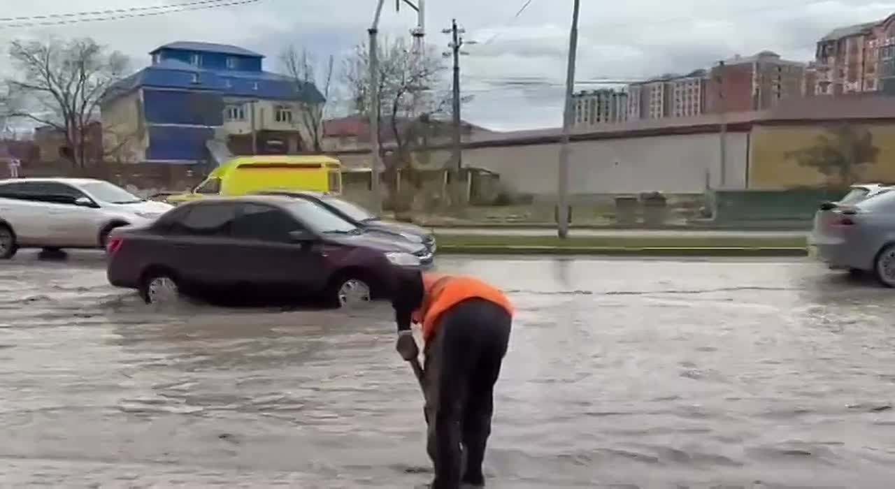 Очистка дождеприемников на улице Хаджи Булача. Работают несколько бригад МБУ «ЦОДД». Махачкалы.
