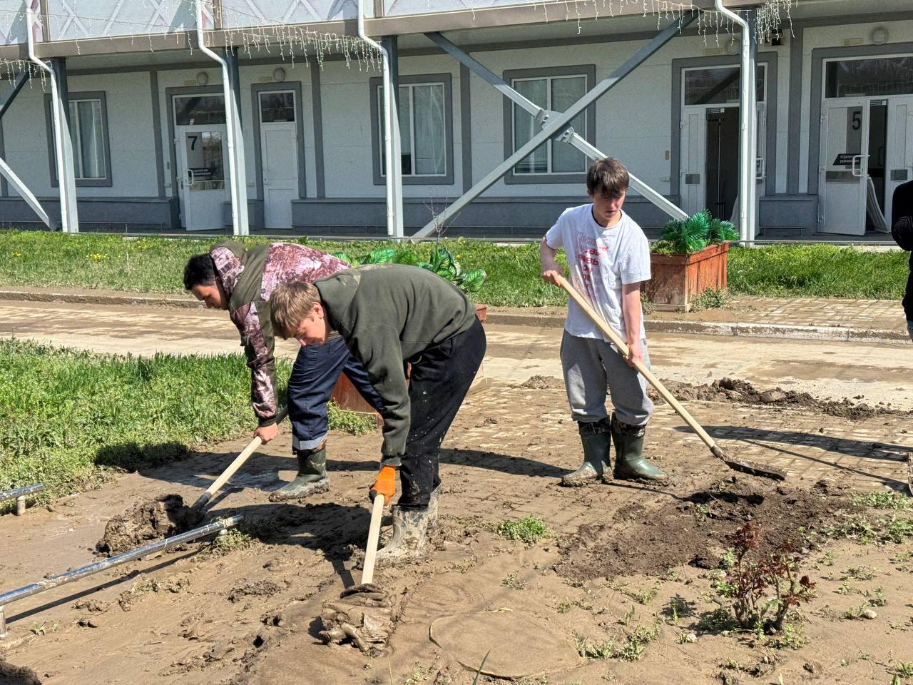 Сегодня в ликвидации последствий принимают участие уже более 40 добровольцев из Хасавюрта. Среди них — студенты Колледжа инновационных технологий, Колледжа ДГУ, Медицинский колледж имени Башларова, училища олимпийского резерва «Триумф», а также учащиеся старших классов школ №3, №5, №15 и №19, которые подключились к общей работе.