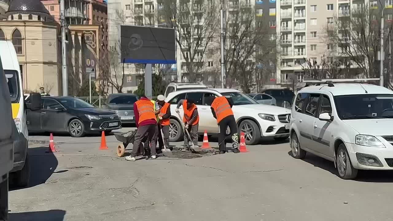 С улучшением погоды в Махачкале возобновлен ямочный ремонт дорог.