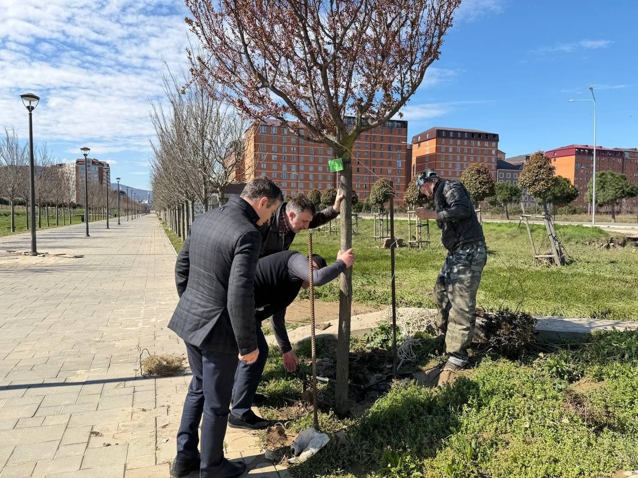 Депутат Народного Собрания Дагестана, главврач Городской клинической больницы №1 Хаджимурад Малаев и руководитель ЦУР Исрафил Исрафилов осмотрели Аллею Медиков в Махачкале, пострадавшую из-за непогоды.