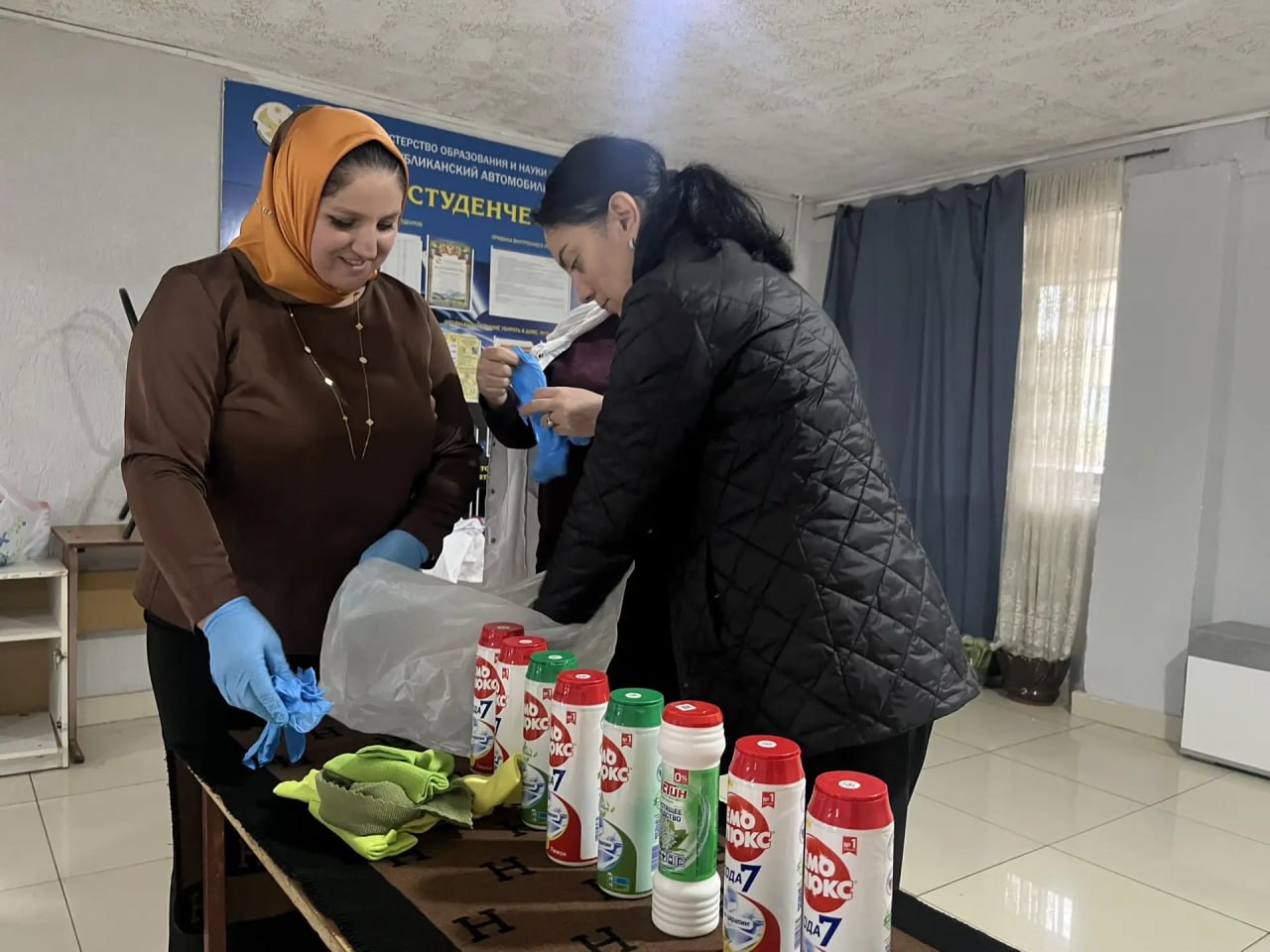 Приятным сюрпризом для ребят стали не только символические наклейки на двери, подтверждающие уют в комнате, но и наборы средств для уборки от организаторов.