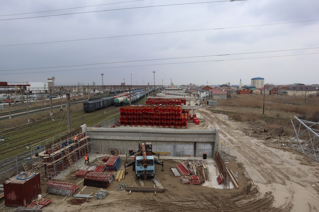 Параллельно ведутся работы по устройству подпорных стен, прокладке водоотводных систем, переустройству линий электропередачи и газопровода. Также продолжается сооружение опор надземного пешеходного перехода.