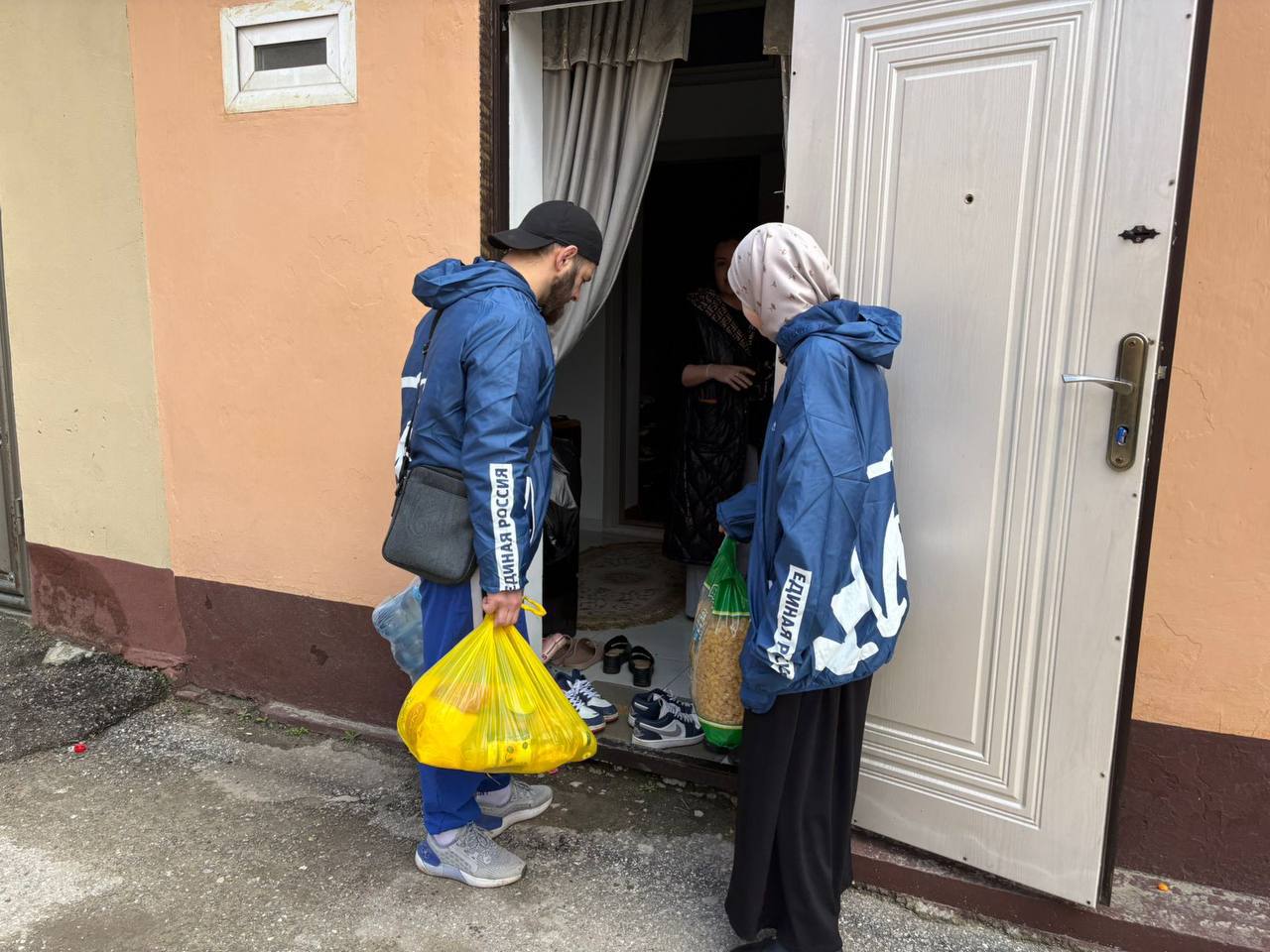 Так, Семье Гозель Гусевой, жительнице села Кадыротар Хасавюртовского района, которой пришлось покинуть дом с взрослой матерью из-за наводнения, волонтеры Единой России привезли продуктовые наборы.