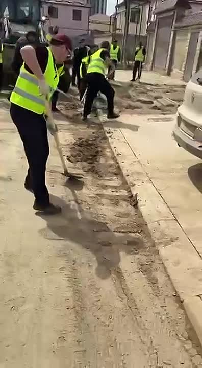 Бригады рабочих работают на различных локациях микрорайона Пальмира.