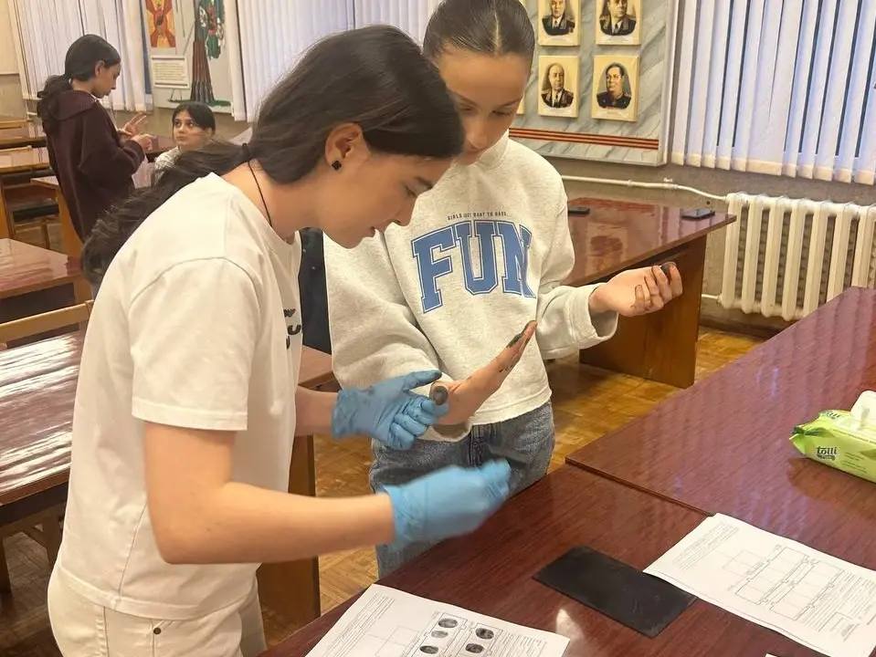Практическая часть занятий включала демонстрацию современных технологий, применяемых при расследовании преступлений. Юнармейцы ознакомились с процедурой дактилоскопии и самостоятельно применили полученные знания на практике. Также ребятам были продемонстрированы учебные фильмы профилактического характера.