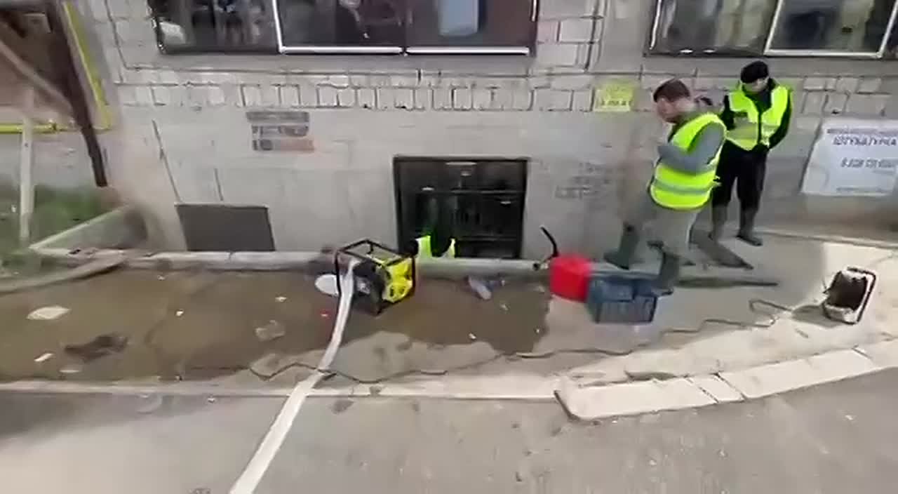 Откачка воды по ул. Магарамкентская, 4. Работают специалисты Управления административно-технической инспекции и муниципального контроля