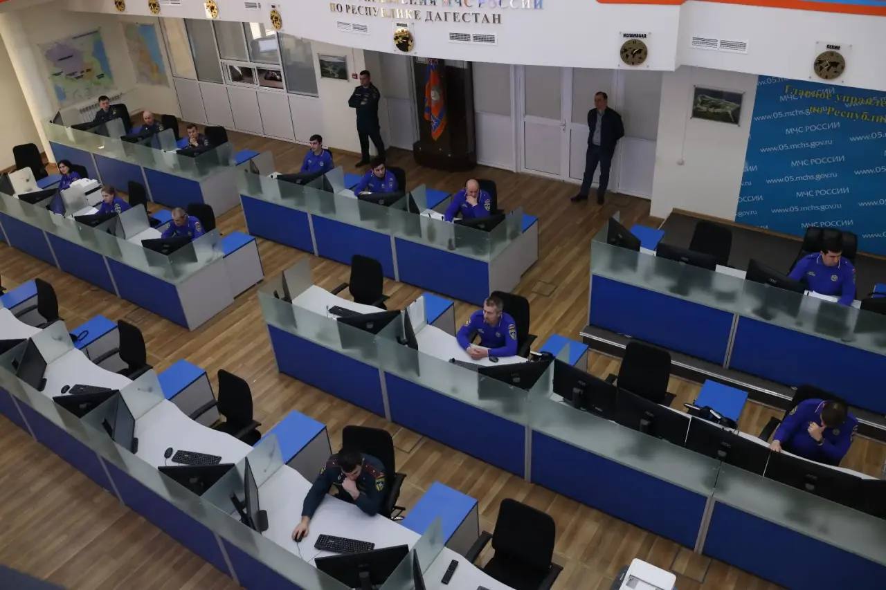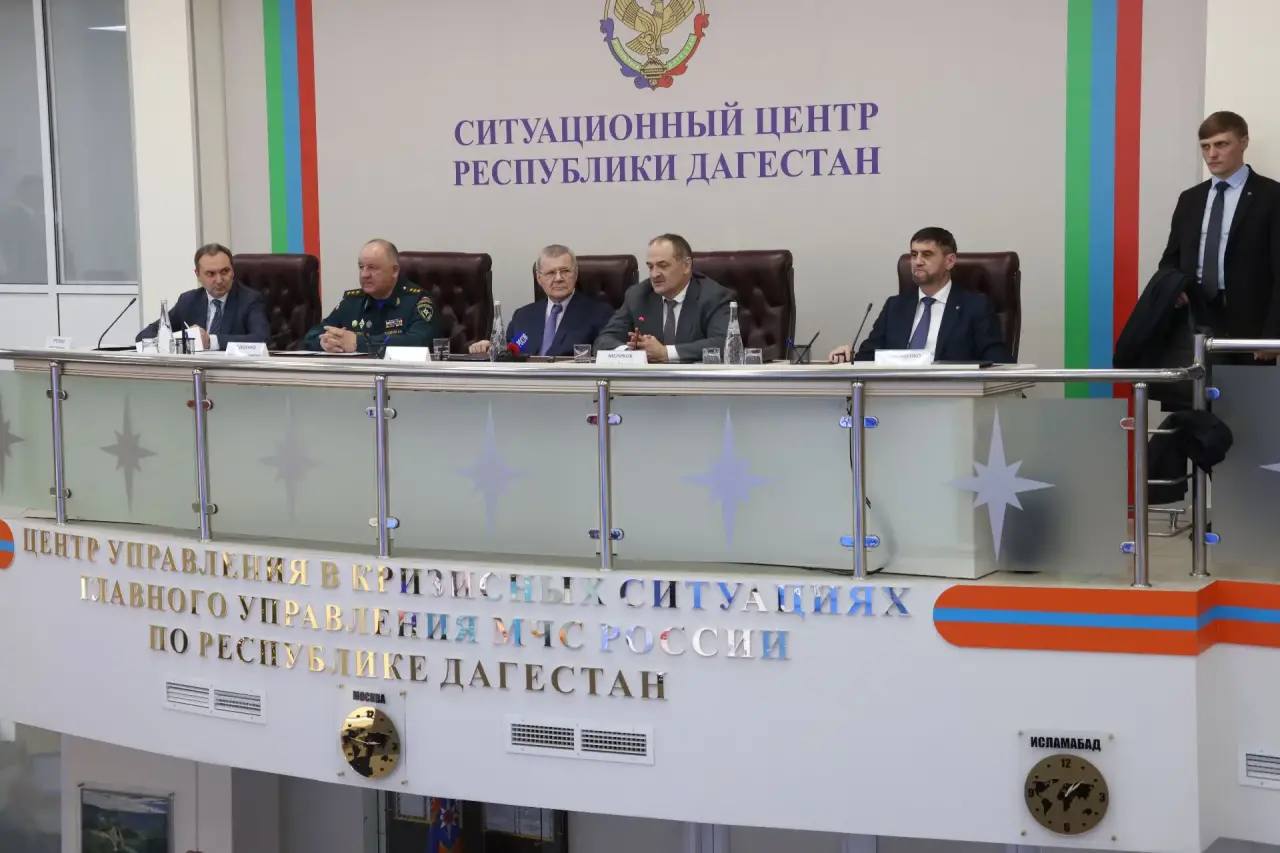 Юрий Чайка и Сергей Меликов проводят совещание в Ситуационном центре МЧС Дагестана