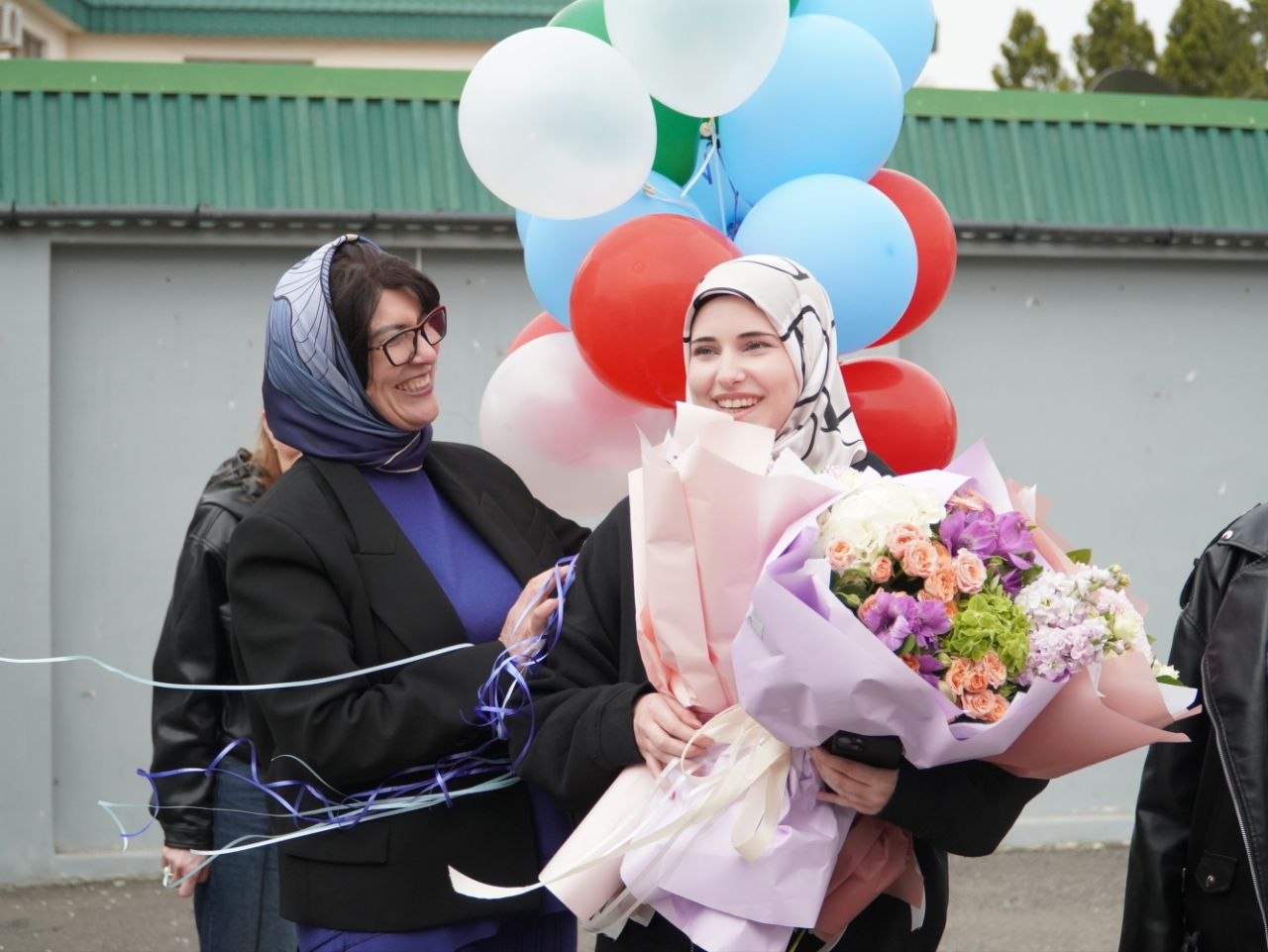 Сегодня в аэропорту Махачкалы состоялась теплая встреча триумфатора. Поздравить девушку с высоким достижением прибыли представители руководства Министерства образования и науки РД, педагогический коллектив лицея, родные и близкие.