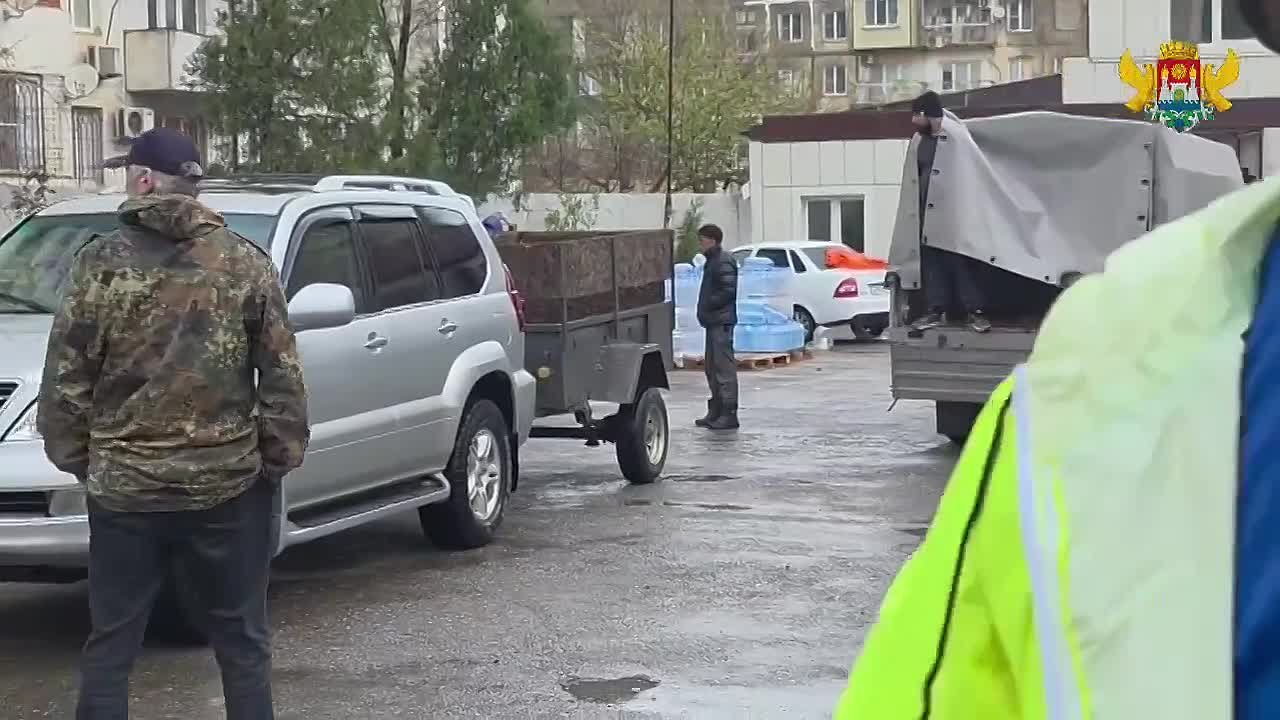 Прямо сейчас, несмотря на идущий дождь, на территории базы службы гражданской обороны и чрезвычайных ситуаций, где развёрнут оперативный штаб по ликвидации последствий обильных осадков, в усиленном режиме идёт погрузка воды для её последующей доставки горожанам по адресам и в ключевые точки.