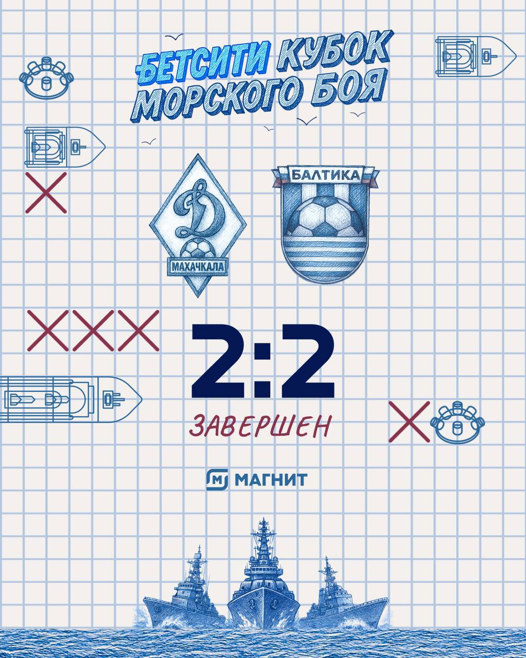 "Балтика" сыграла вничью с махачкалинским "Динамо" в матче РПЛ. Встреча завершилась со счетом 2:2.