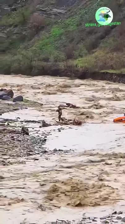 В Табасаранском районе Дагестана экскаватор, работавший на расчистке русла после обвала, упал в реку.