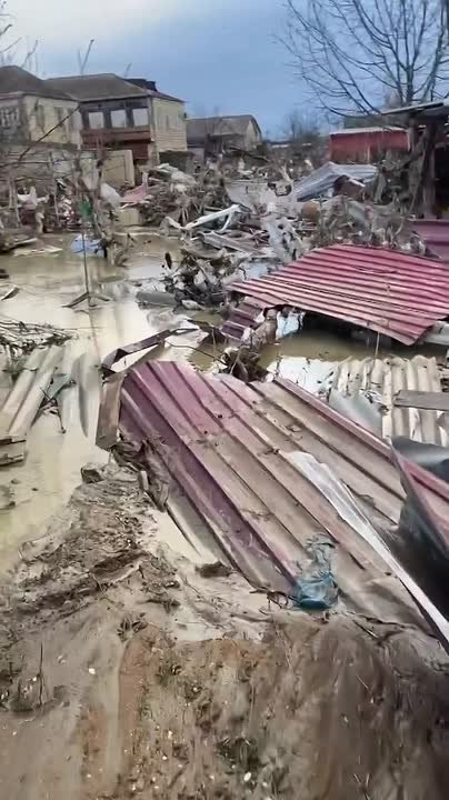 Последствия разрушительного наводнения в дагестанском поселке Мамедкала, неподалеку от которого смыло в реку несколько автомобилей с людьми.