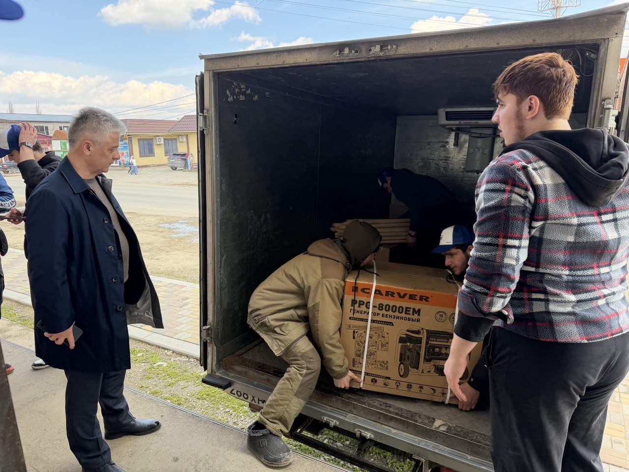 Член партии «Единая Россия», известный предприниматель Мамед Аббасов сегодня приехал в Хасавюртовский район и передал партию гуманитарной помощи местным жителям, пострадавшим от наводнения – электрогенераторы, сапоги, питьевую воду.