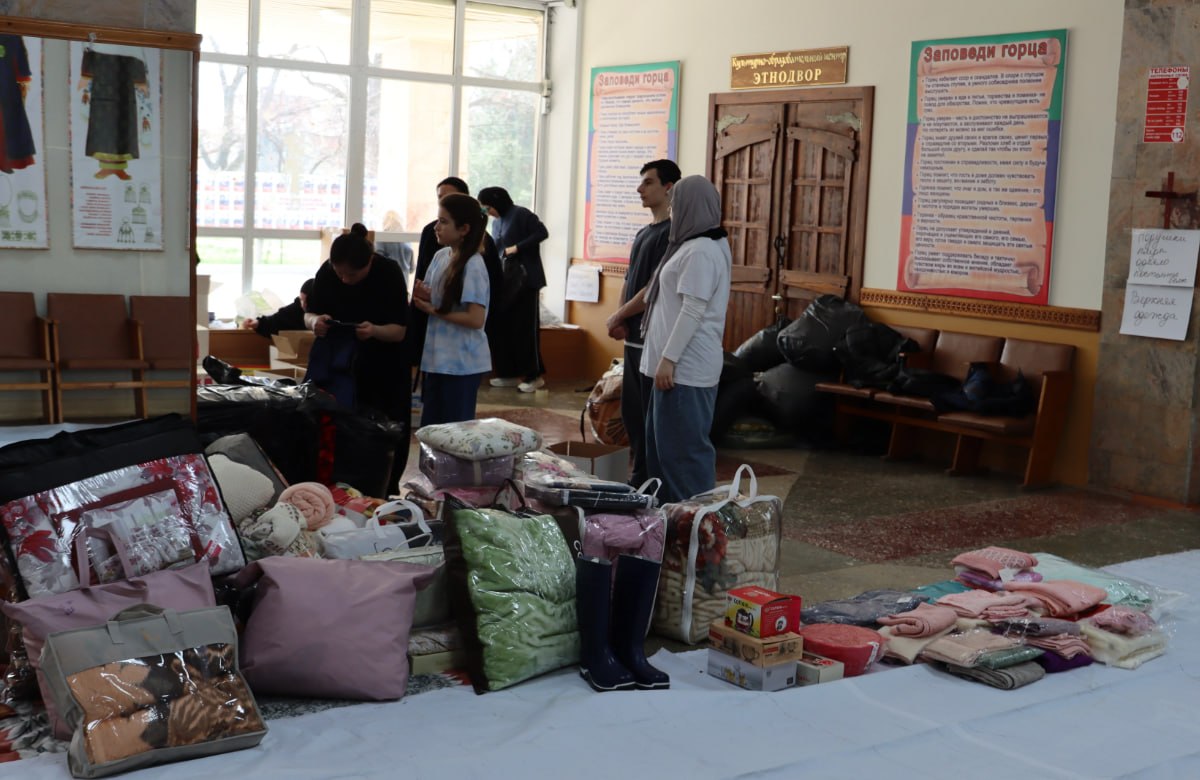 Параллельно в городе по инициативе руководителя муниципалитета запустили сбор гуманитарной помощи. Фойе Дворца культуры с раннего утра превратилось в логистический центр. Люди несли продукты, теплую одежду, электроприборы, воду, постельное белье и одеяла.