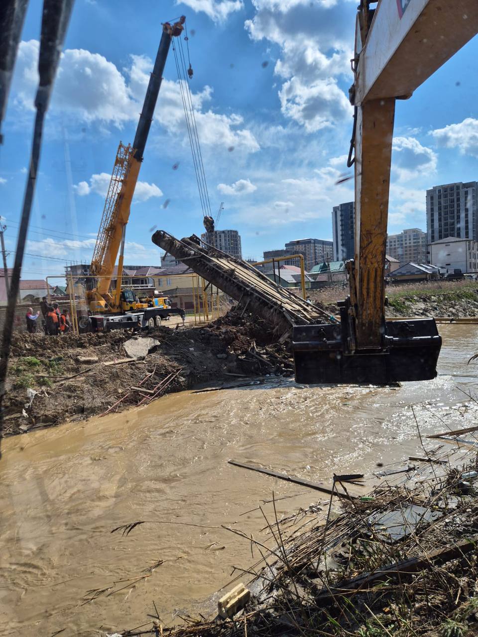 Из-за большого паводков частично был поврежден мост, который препятствовал свободного протоку воды.