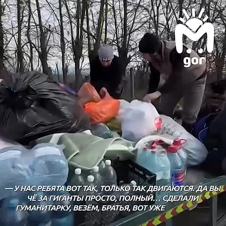 Люди в первые же сутки собрали весь необходимый объём гуманитарки. Волонтёры работают без отдыха, перекусывают на ходу. Они расчищают дома и улицы, помогают выносить уцелевшие вещи, спасают животных.