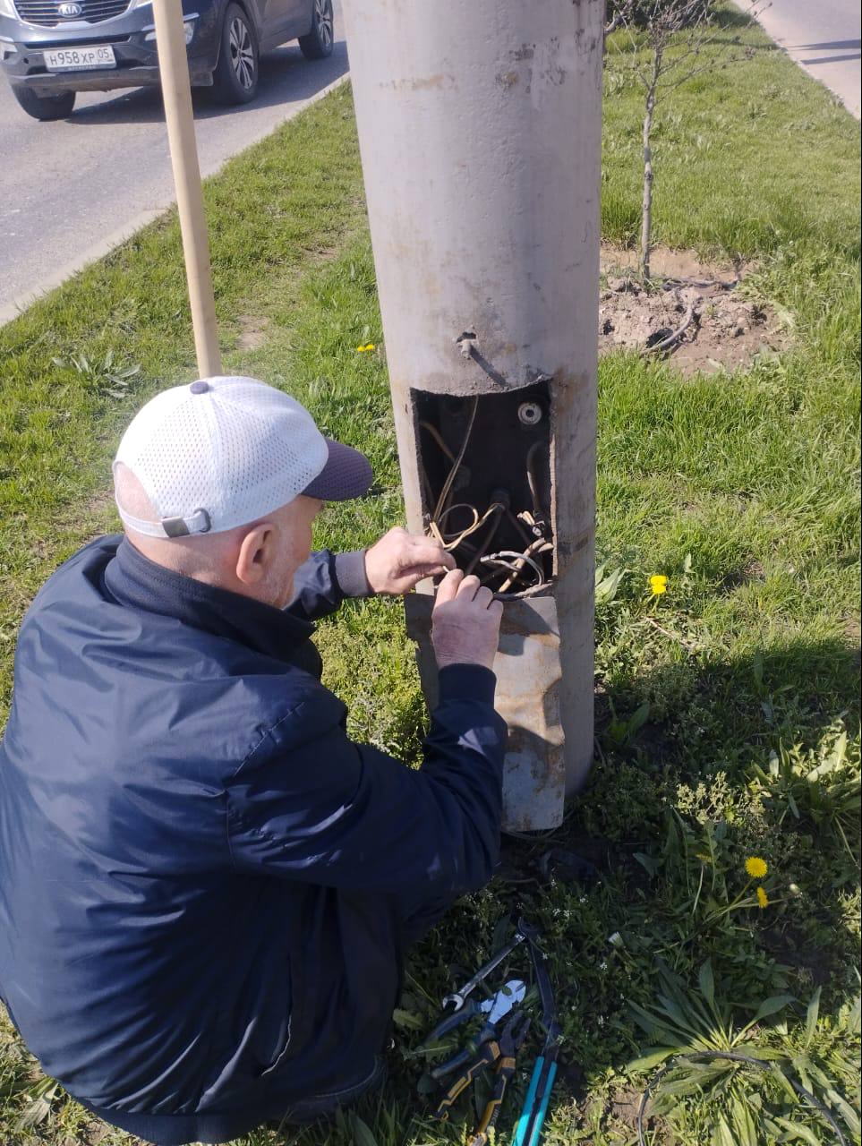 МБУ «Благоустройство» ведет работу по устранению повреждений на линиях уличного освещения.