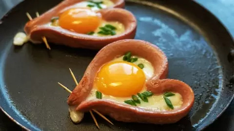 Сосиски необходимо отварить в кипящей воде в течение одной минуты. Это сделает их более эластичными и удобными для дальнейшей обработки.Каждую сосиску аккуратно разрезать так, чтобы можно было соединить края с помощью зубочистки, создавая форму сердечка.На предварительно разогретую сковороду влить растительное масло и добавить кусочек сливочного масла для аромата.Обжарить сосиски в форме сердечка с обеих сторон до золотистой корочки.Повернув сердечки, аккуратно разбить в каждое из них по одному яйцу. Не забудьте посолить и поперчить по вкусу!Готовить на небольшом огне до тех пор, пока яичный белок не схватится, а желток останется мягким.Подавайте завтрак горячим, украсив свежими овощами и зеленью. Можно добавить немного тертого сыра для дополнительного вкуса.Такой завтрак не только порадует ваших близких, но и станет отличным началом дня. Приятного аппетита и кулинарных успехов!