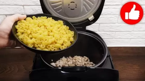 Приготовление этого гастрономического чуда начинается с того, что в чашу мультиварки наливается растительное масло, а затем включается режим «Жарка». Фарш обжаривается до золотистого цвета в течение пяти минут. Далее в кастрюлю добавляются макароны, специи и горячая вода, после чего все хорошо перемешивается.