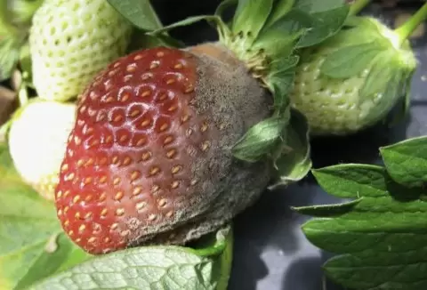Определить, что клубника подверглась нападению серой гнили, можно по следующим симптомам: